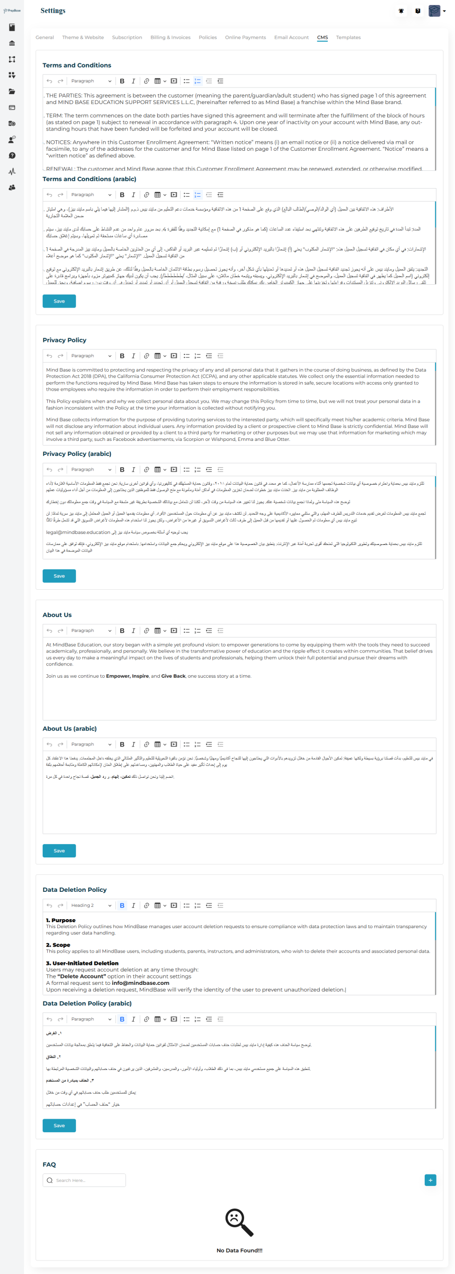 Terms & ConditionsAdd or edit your organization’s terms (English & Arabic versions supported).