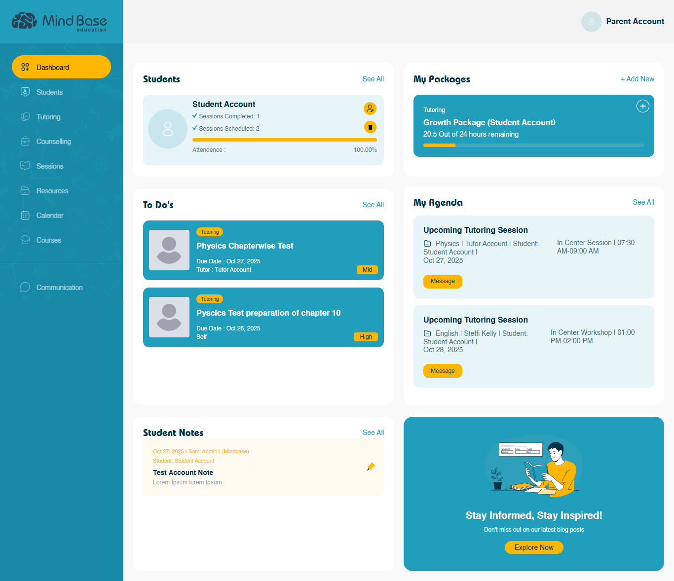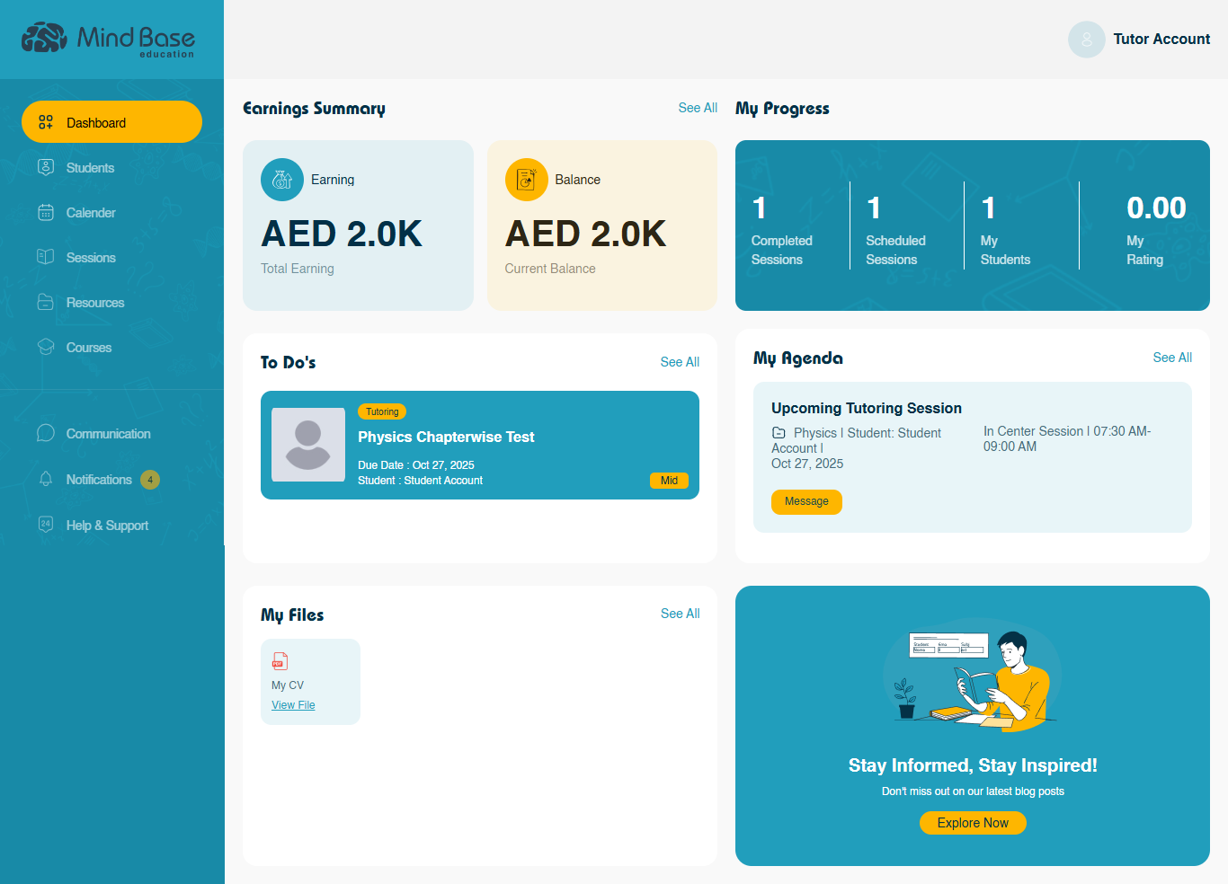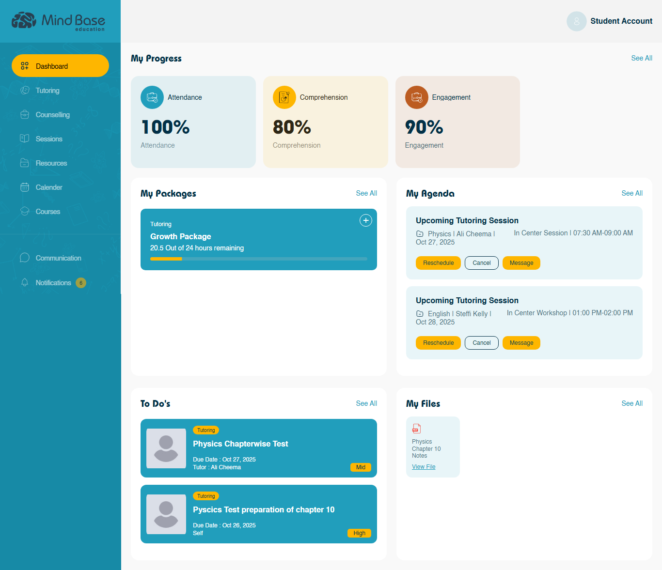 Tutors & counselors use their own dedicated dashboard to manage students, sessions, and notes.