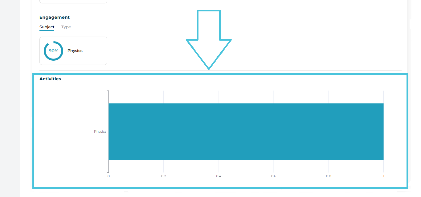The Activities section visualizes student performance and participation trends using an interactive bar chart.