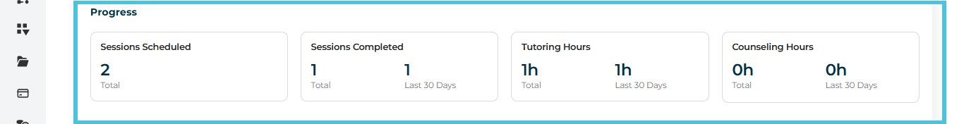 This section automatically updates as students complete tutoring or counseling sessions, making it easy to track their overall activity.