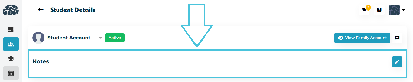 A dedicated area for storing internal notes related to the student. These notes are visible only to admins and help teams keep track of important information such as behavior notes, follow-up reminders, academic concerns, or special requirements. Notes can be added at any time and serve as a historical log that supports tutoring and counseling decisions.