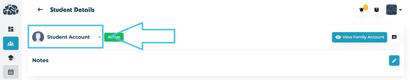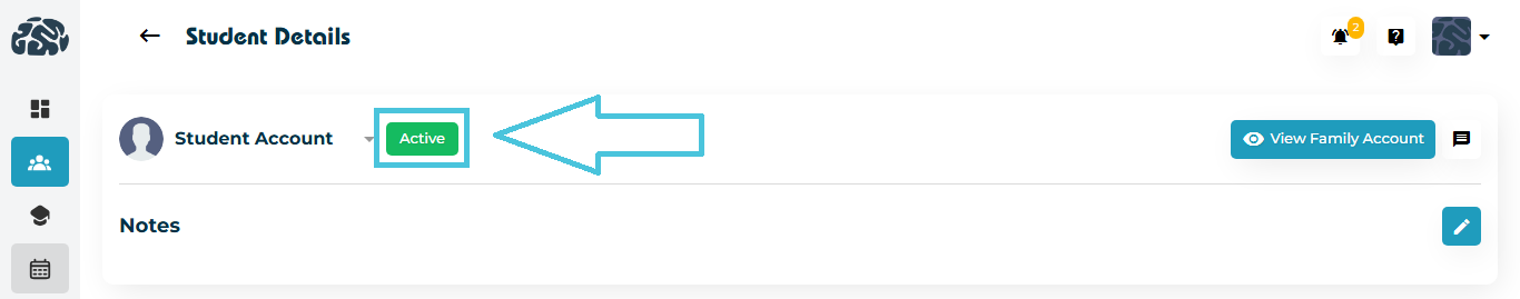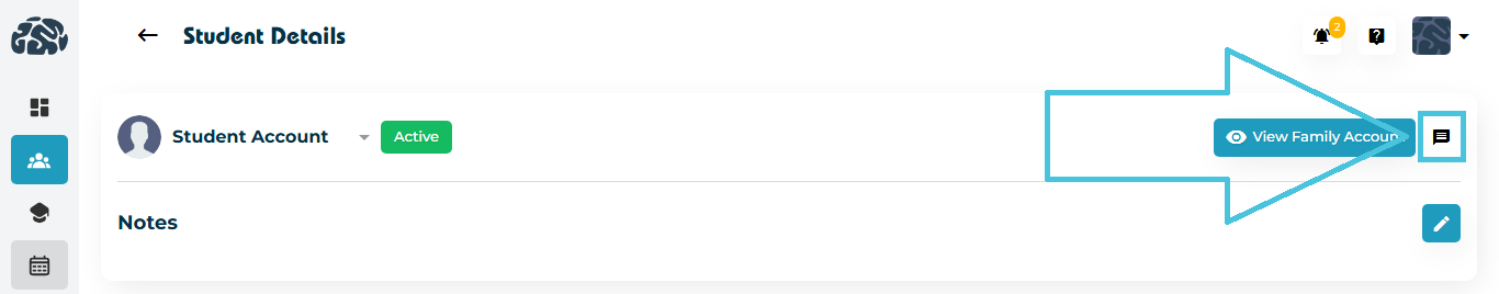 This button links directly to the parent or guardian’s Billing & Invoices Section. From there, admins can view and manage invoices, subscriptions, payment history, saved cards, promotions, or family-linked student profiles. This quick link is extremely helpful during billing inquiries, package renewals, or when resolving payment-related issues.