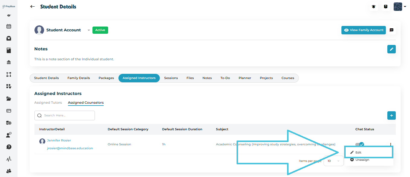 The Student–Instructor tab allows Admins to effectively assign instructors (tutors or counselors) to the students.