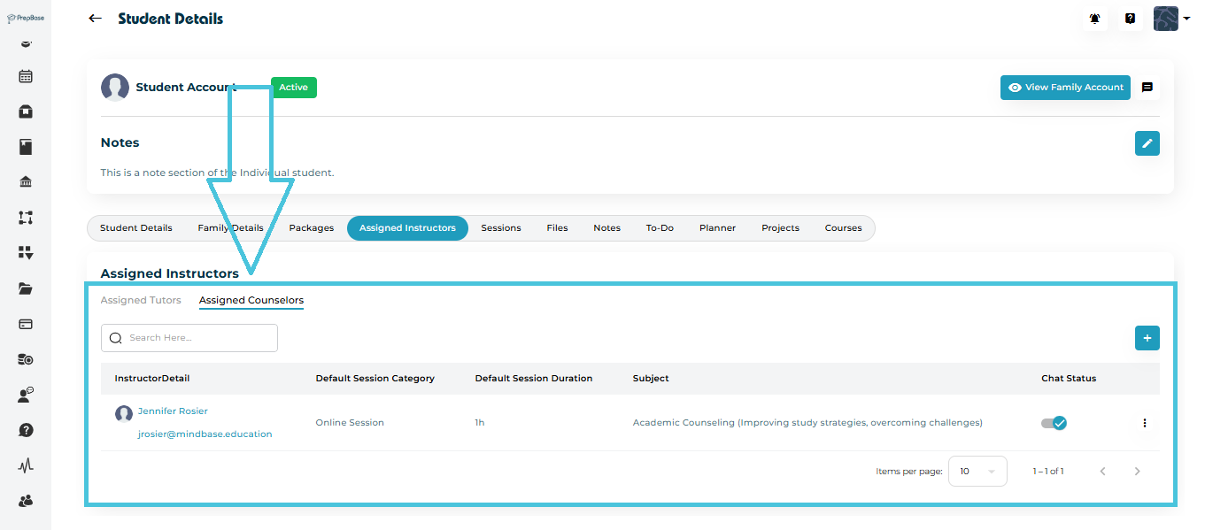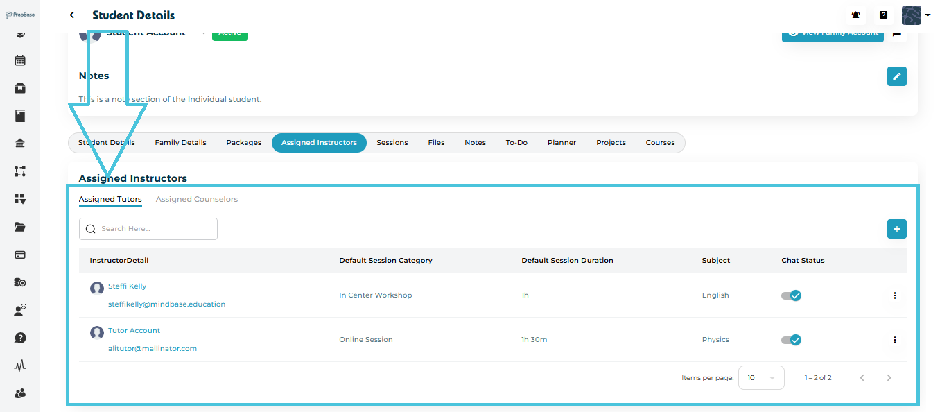 The Student–Instructor tab allows Admins to effectively assign instructors (tutors or counselors) to the students.