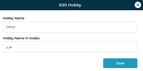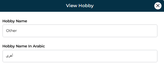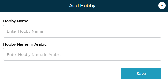 Hobby Name in ArabicEnter the Arabic translation of the hobby (optional but recommended for bilingual platforms).