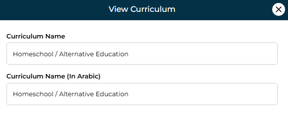 | Curriculum Name (Arabic) | Optional Arabic equivalent for bilingual organizations. |