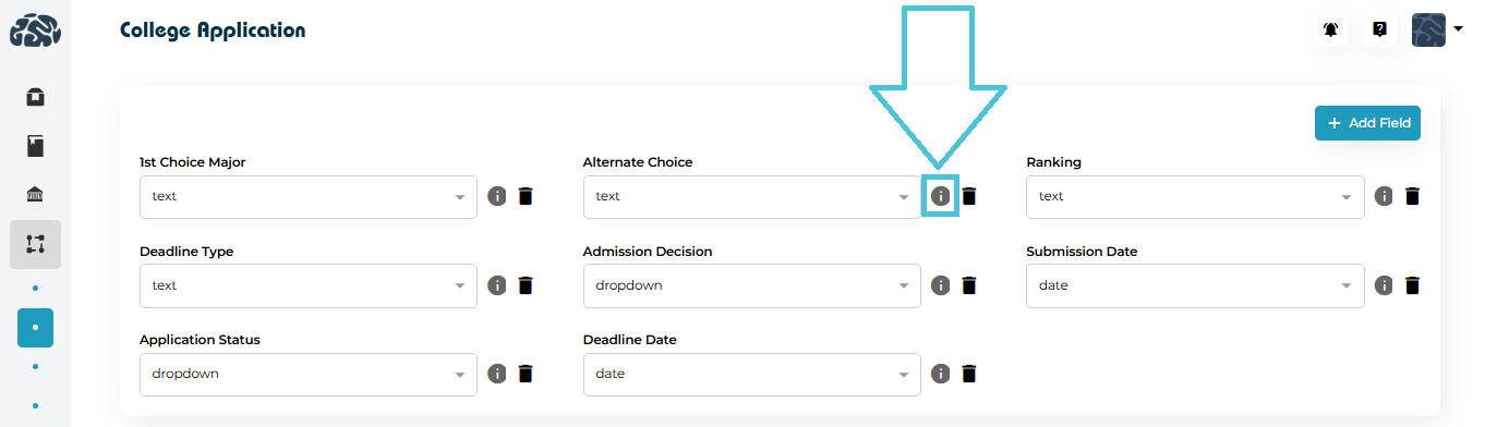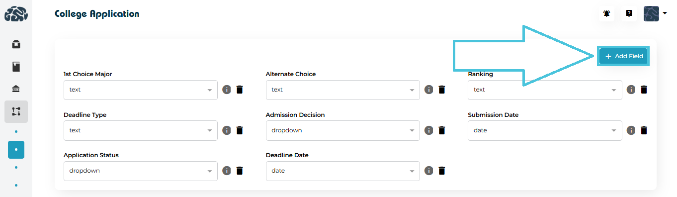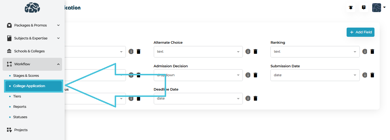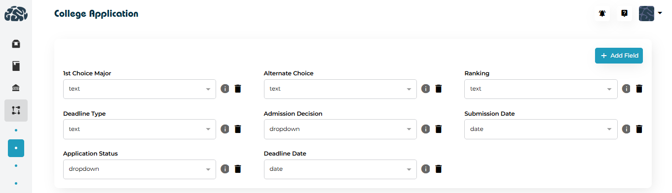 The College Application module allows admins to design and control the exact fields used to track each student’s college application journey. By configuring application fields, you can standardize data entry, ensure consistency across counselors, and adapt the workflow to different institutions, regions, or admission requirements.