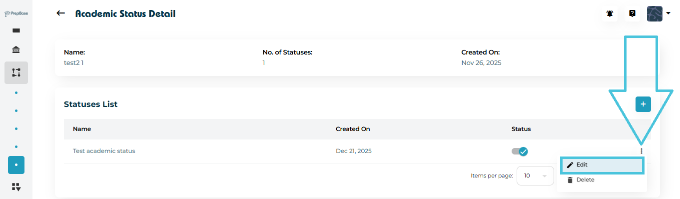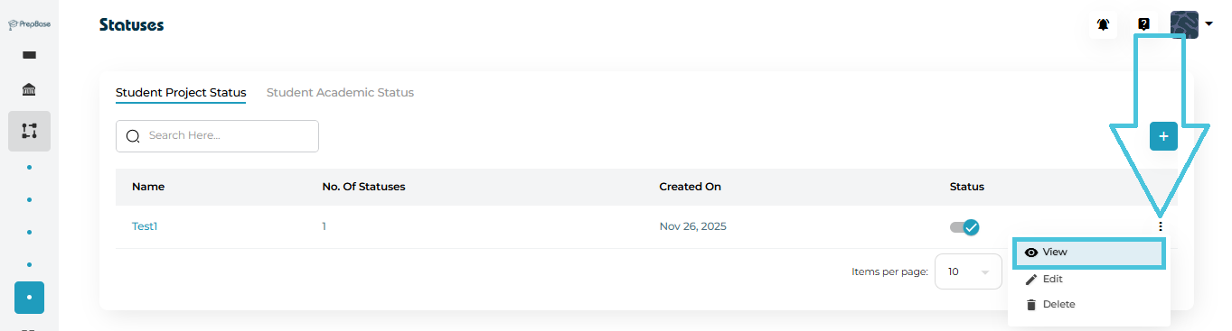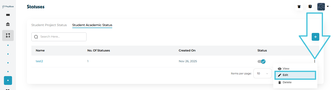This guide explains how admins can define, organize, and manage student and academic statuses inside the PrepBase Admin Portal. These statuses act as standardized labels that help track student progress, academic standing, and project lifecycle stages across the platform.