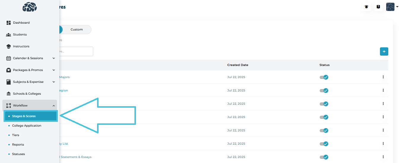Admin Panel → Workflow → Stages & Scores