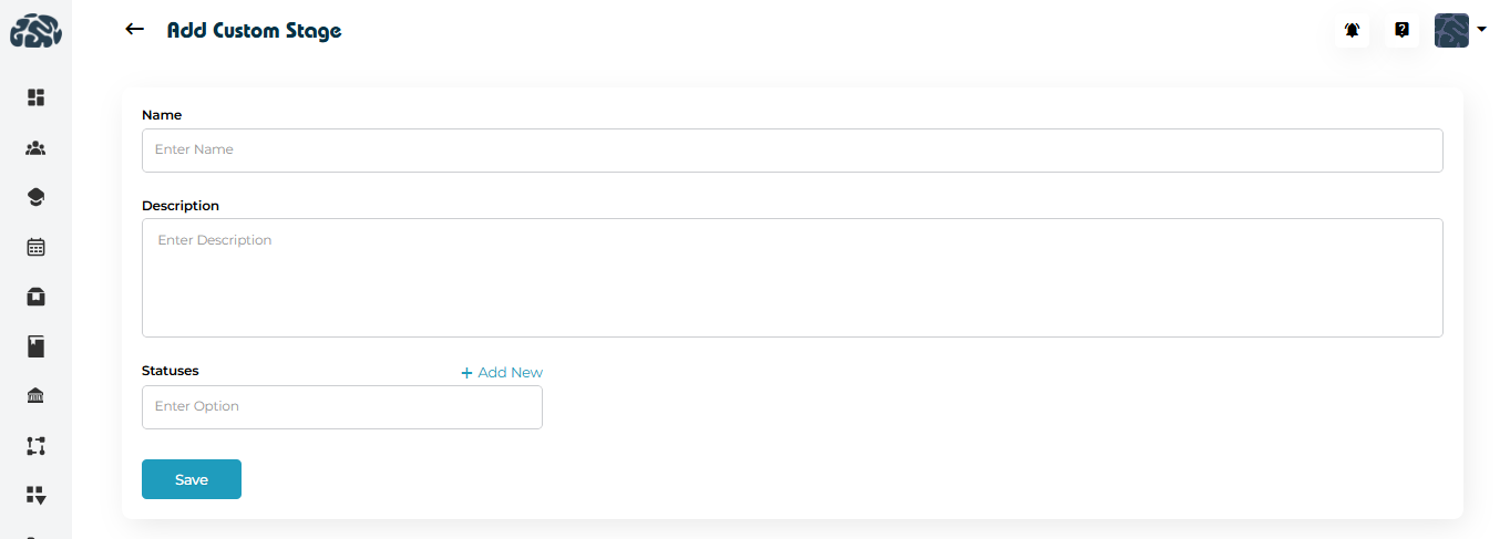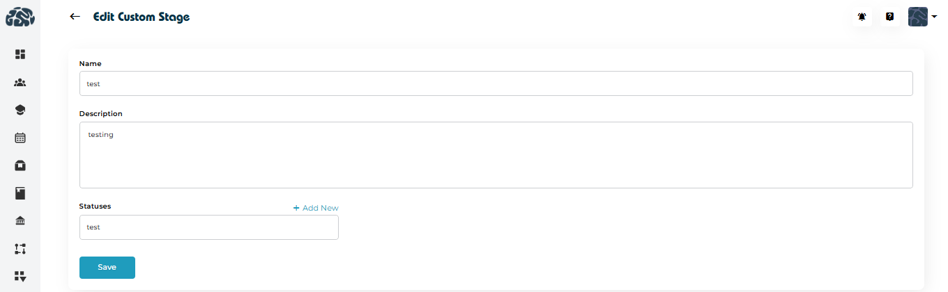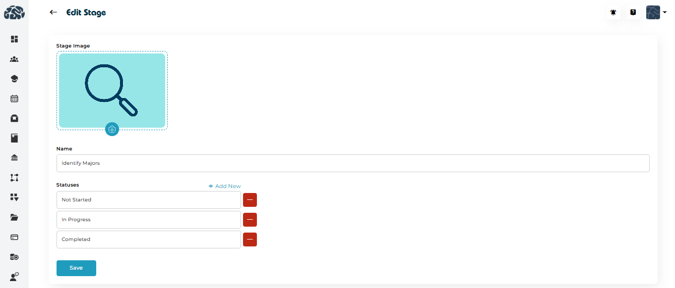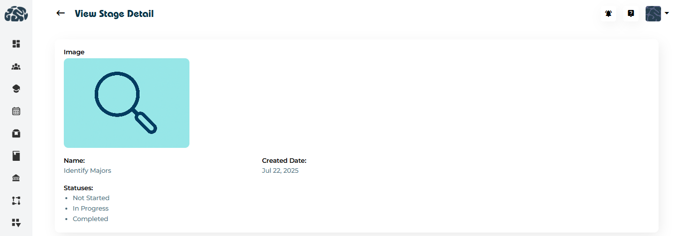 Stages represent the key steps a student goes through during an academic or admissions process. Each stage can include multiple statuses to reflect progress.