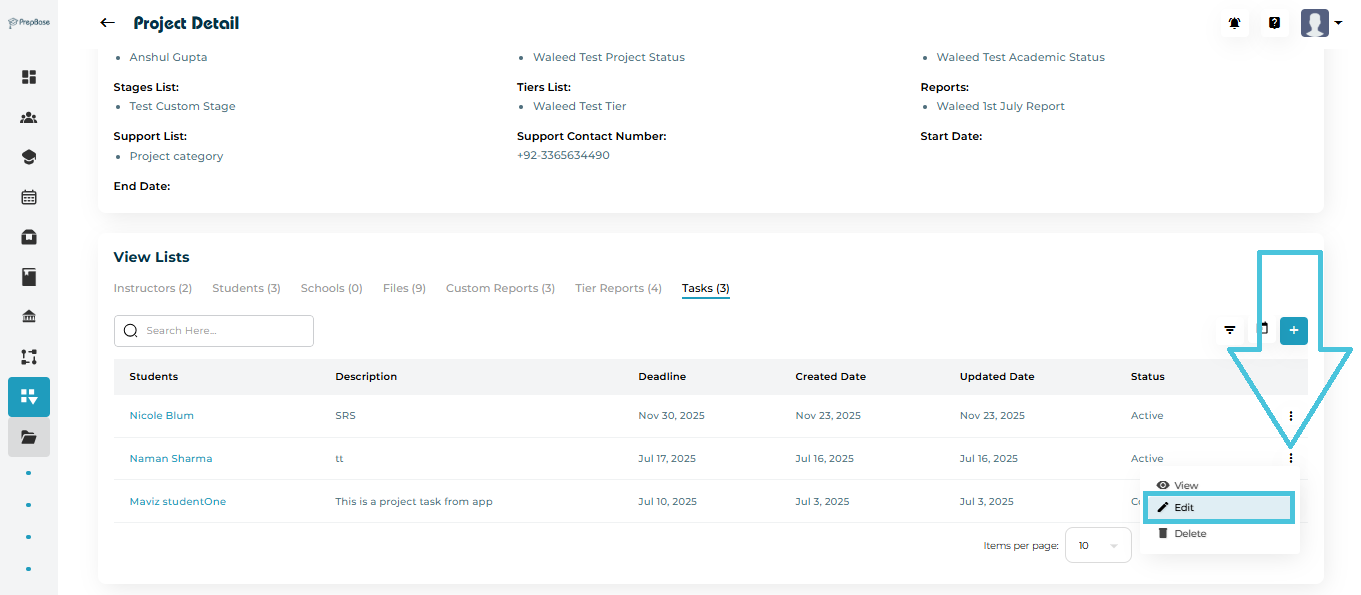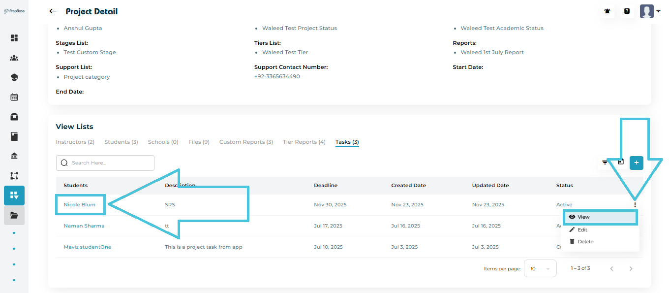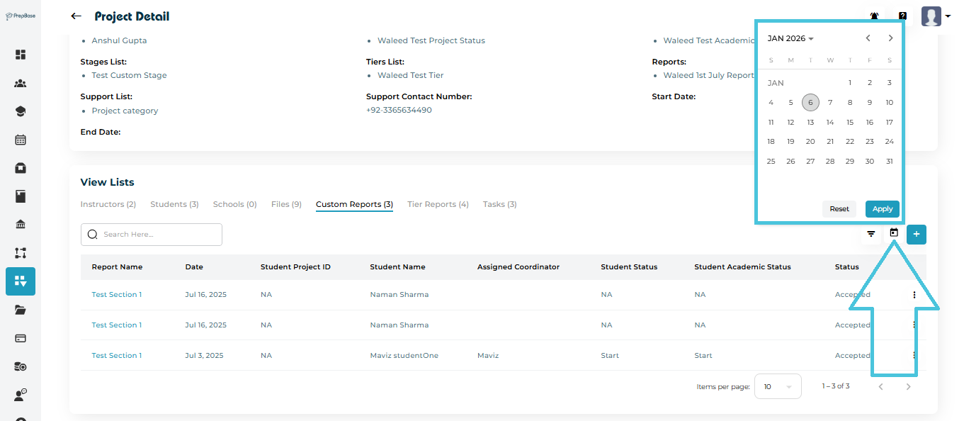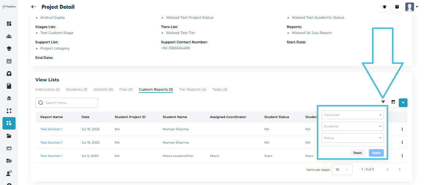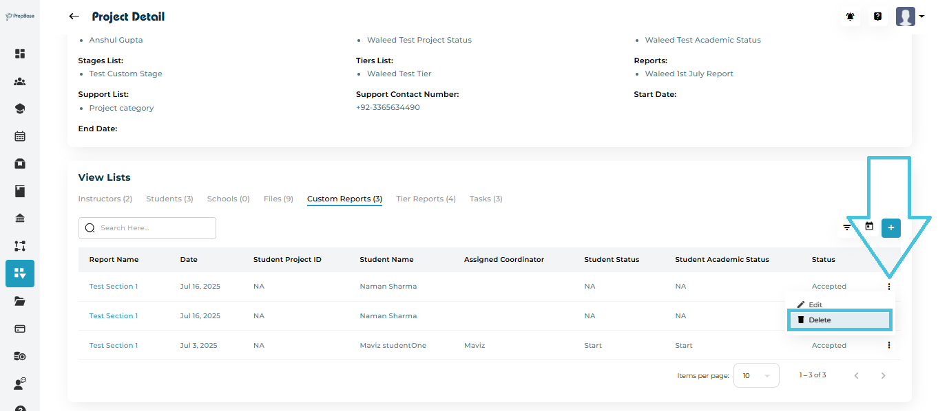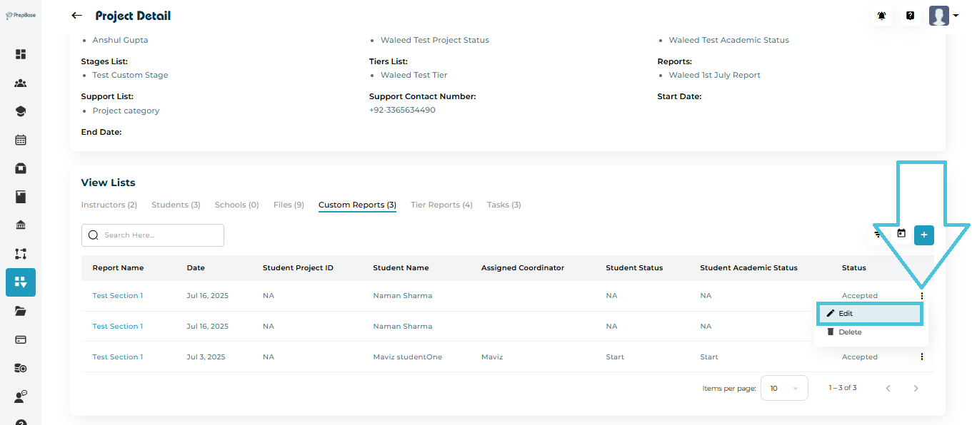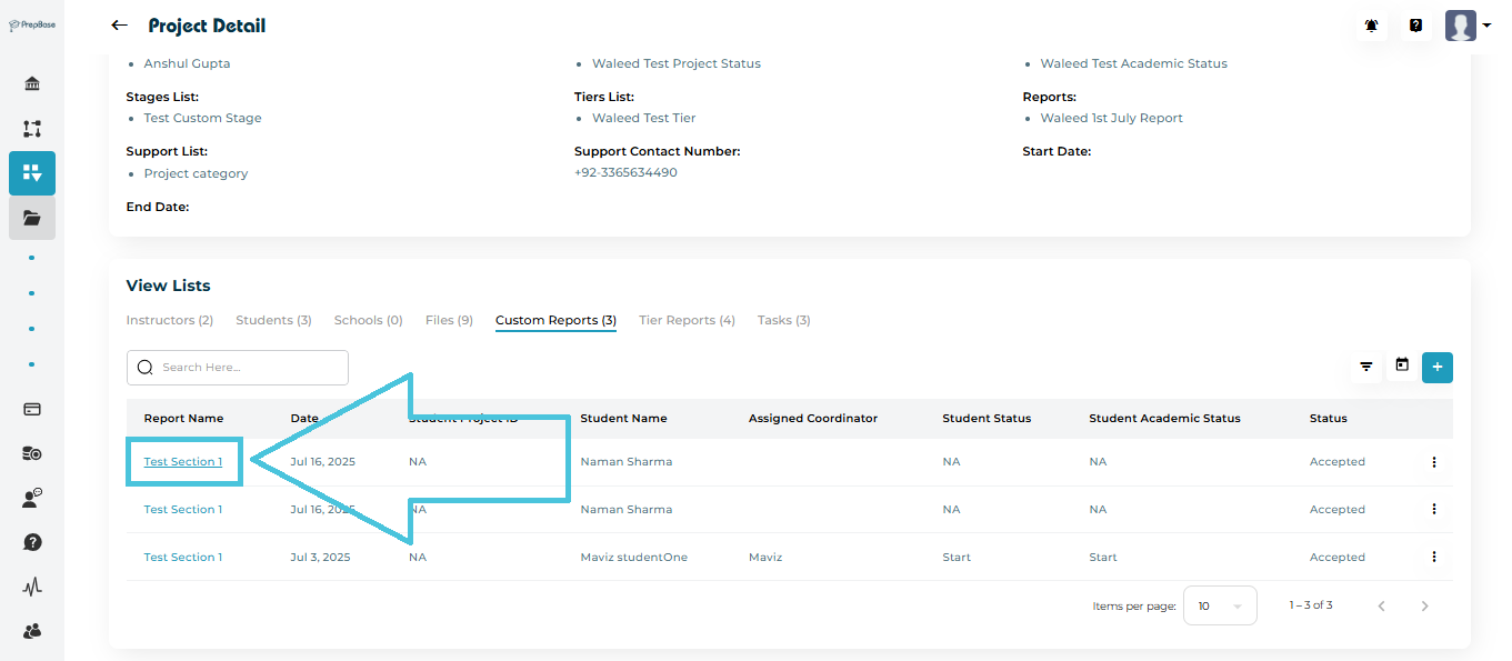 Custom Reports allow structured data collection for students within a project (for example: assessments, reviews, or evaluations).