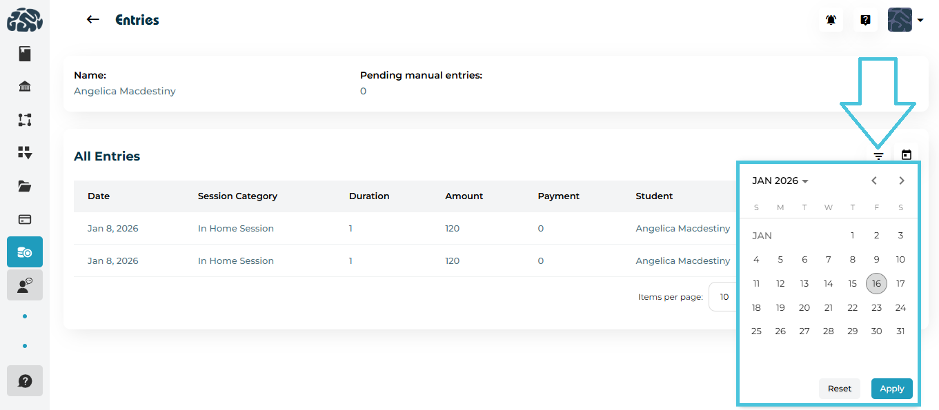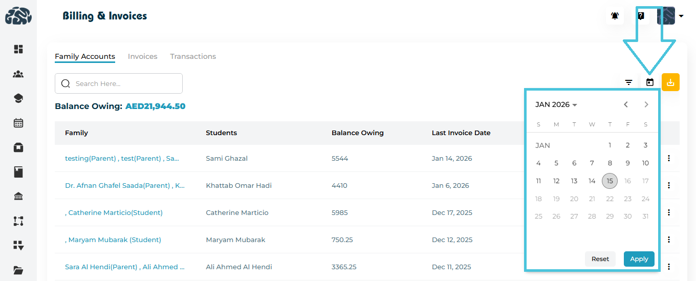 - Date Range (via calendar selection)