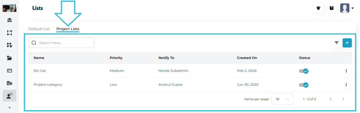 Tabs – Switch between General and Project-Related tickets