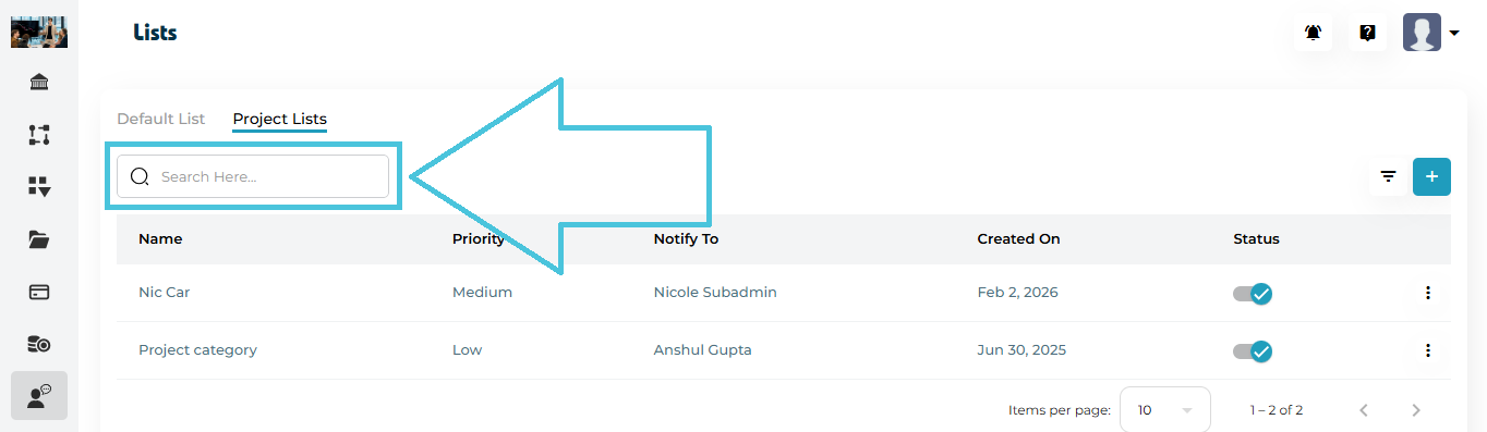 Search Bar – Quickly find tickets by user or keyword