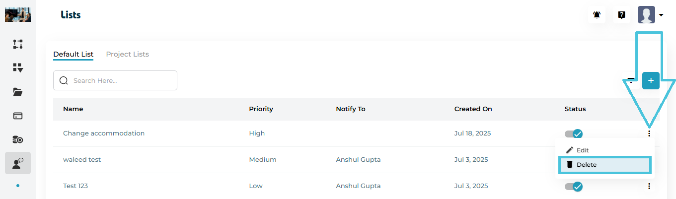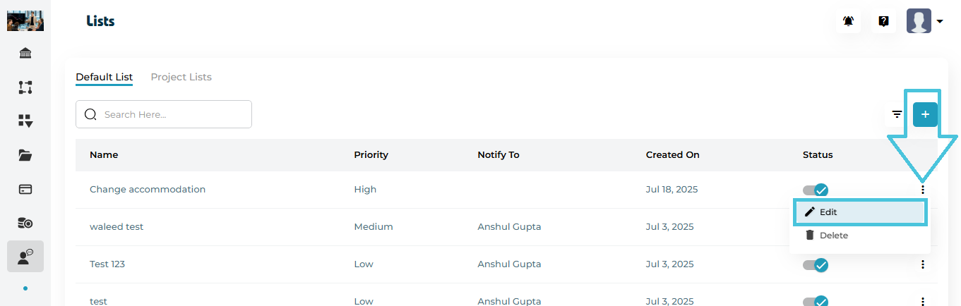| Actions | Assign, View, Edit, Delete |